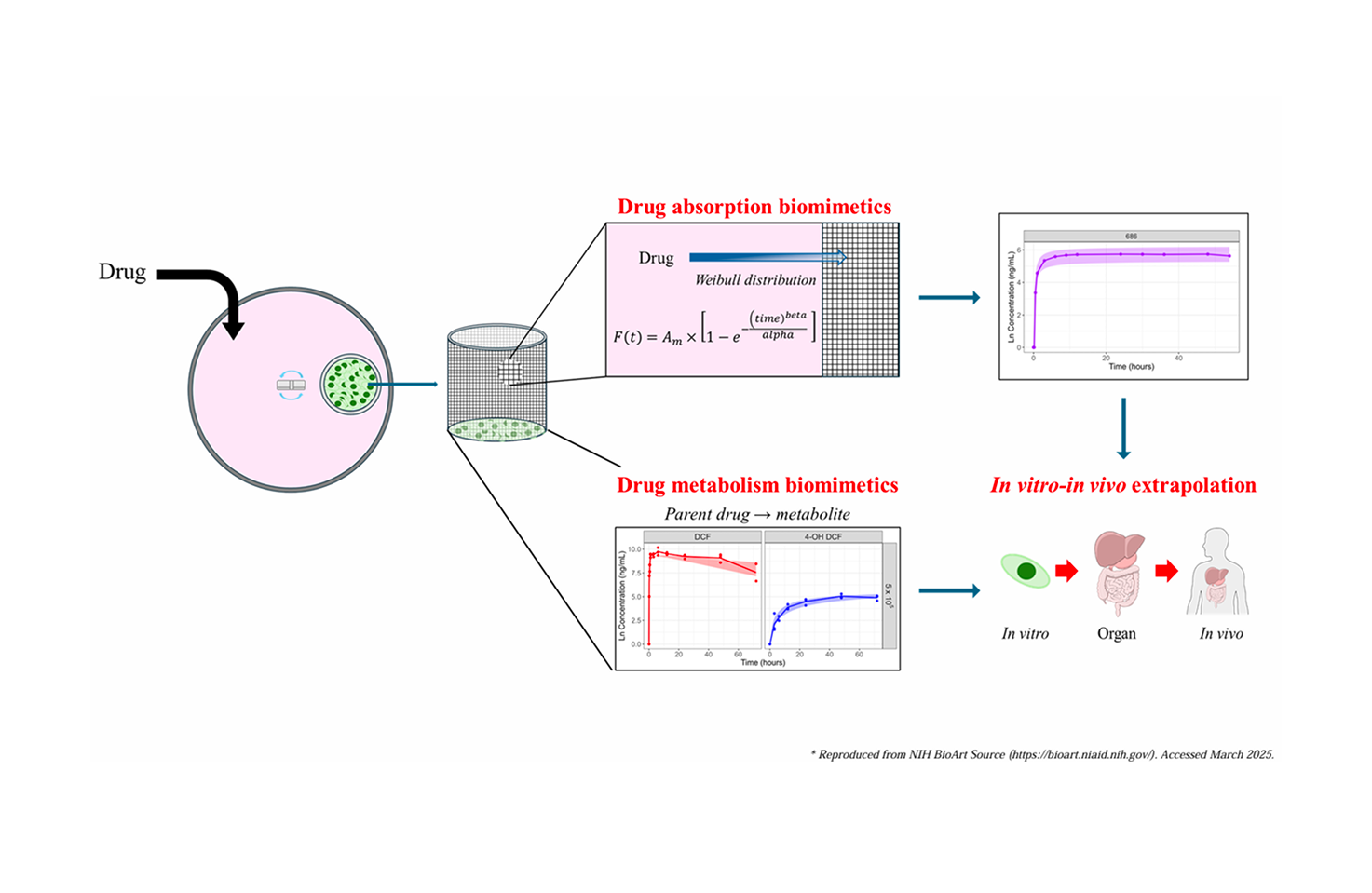 This platform is an interactive R Shiny-based web application designed to predict in vivo drug kinetics by integrating a patented biomimetic in vitro system (Korean Patent No. 10-2022-0153547) with mechanistic pharmacokinetic modeling. Leveraging experimental data on drug diffusion and cellular metabolism from the porous mesh-based system , the platform simulates the complex processes of drug absorption and metabolic clearance. This model-based strategy aims to provide a reliable, animal-free tool for pharmacokinetic prediction, thereby supporting the 3R (replacement, reduction, and refinement) principle by reducing the reliance on animal testing in drug development.