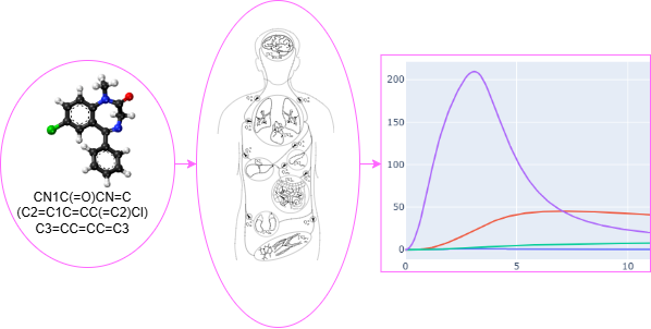 This tool predicts the Absorption, Distribution, Metabolism, Excretion, and Toxicity (ADMET) properties of a chemical compound from its SMILES string. These predicted parameters are then used to run a Physiologically Based Pharmacokinetic (PBPK) simulation, providing insights into the compound's behavior in the body.
