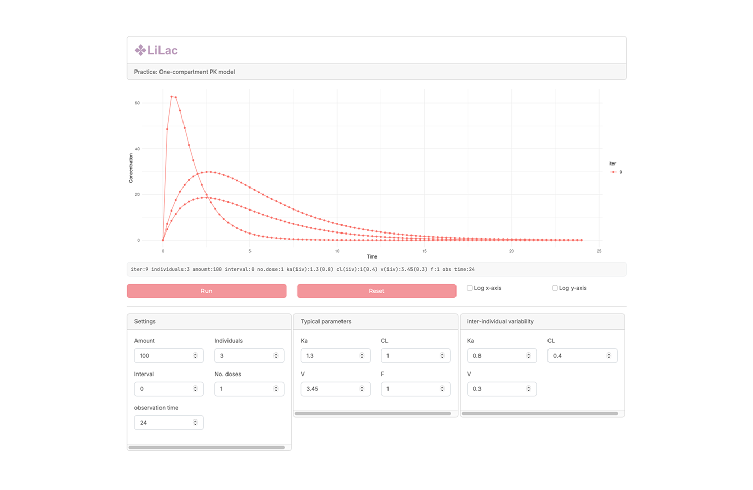 A simple pharmacokinetic simulator designed to generate drug concentration–time profiles under various dosing conditions. This application allows users to compare scenarios such as single vs. multiple dosing, altered intervals, and dose adjustments, making it useful for both education and exploratory PK analysis.