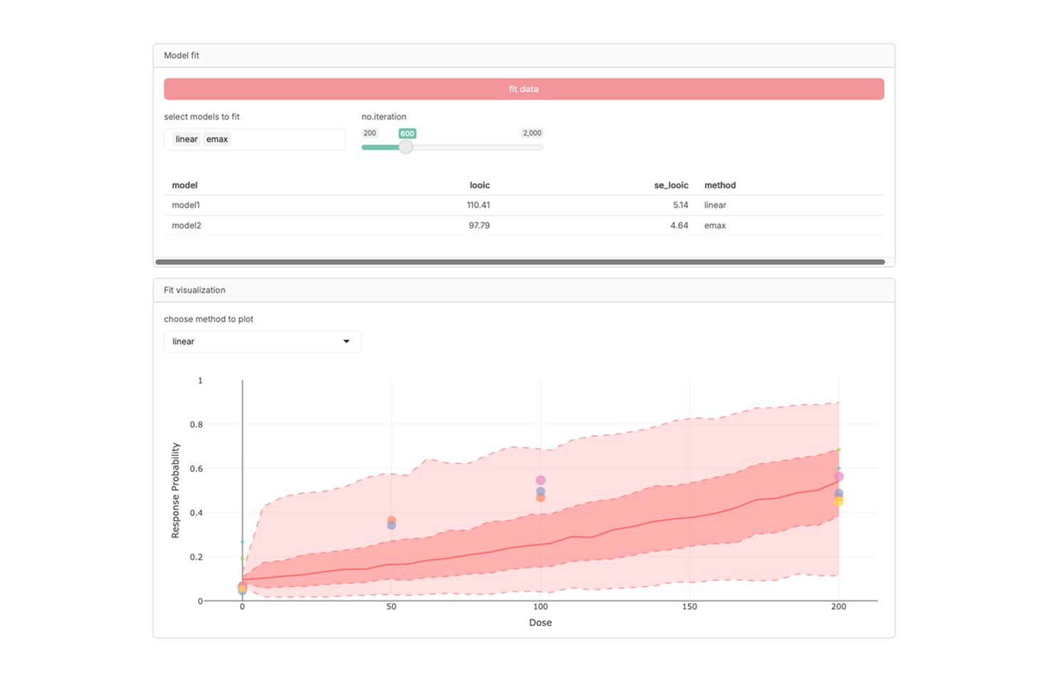 An interactive R-Shiny application for conducting model-based meta-analysis (MBMA), particularly focused on exploring dose–response relationships across studies. It supports visualization, integration of heterogeneous data, and quantitative assessment of drug effects, providing a practical platform for dose optimization research.